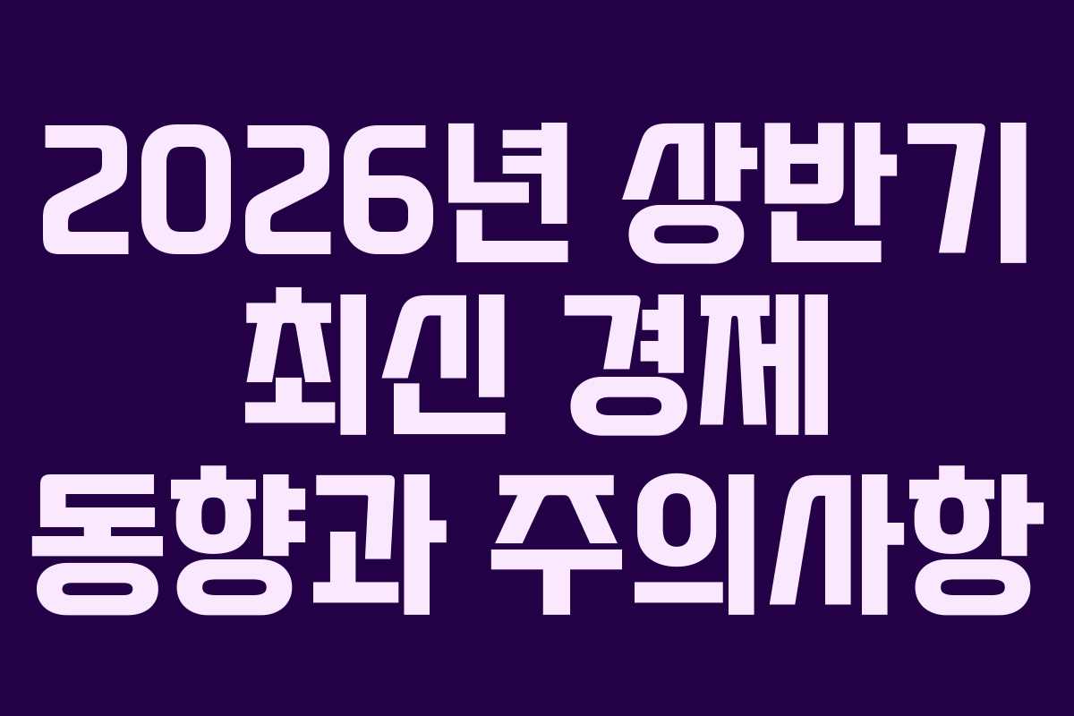 2026년 상반기, 경제 환경은 여러 요인으로 변동성이 클 것으로 예상된다. 이 시기에 알아두어야 할 최신 동향과 주의할 점들을 정리해 보았다.