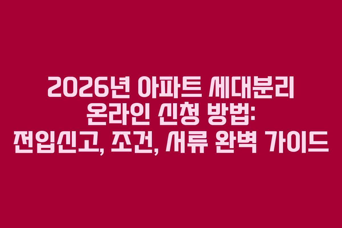부모님과 같은 아파트에 거주하며 청약 당첨 확률을 높이거나 세금을 절감하기 위해 세대분리를 고려하고 있는 분들이 많습니다. 많은 이들이 이러한 절차가 복잡하다고 생각해 주민센터에 직접 방문해야 한다고 여깁니다. 그러나 2026년 현재, 아파트 세대분리는 ‘정부24’ 홈페이지를 통해 간편하게 온라인으로 신청할 수 있습니다. 특히 세대분리와 관련된 규정이 강화되었기 때문에, 단순한 신청을 넘어 실제로 승인이 이루어지기 위한 명확한 기준을 숙지하는 것이 중요합니다. 이번 가이드에서는 온라인 신청 방법부터 필수 요건까지 자세히 안내하겠습니다.