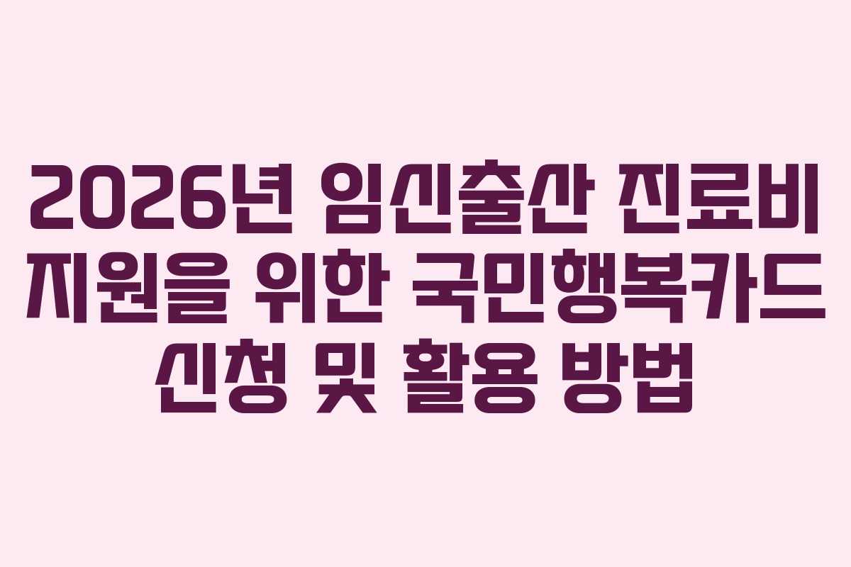 2026년 기준으로 국민행복카드를 통해 임신 및 출산 관련 진료비를 지원받는 방법에 대해 알아보겠습니다. 이 카드로 최대 100만 원의 바우처를 신청하고 사용할 수 있는 방법과 관련된 정보를 정리했습니다.