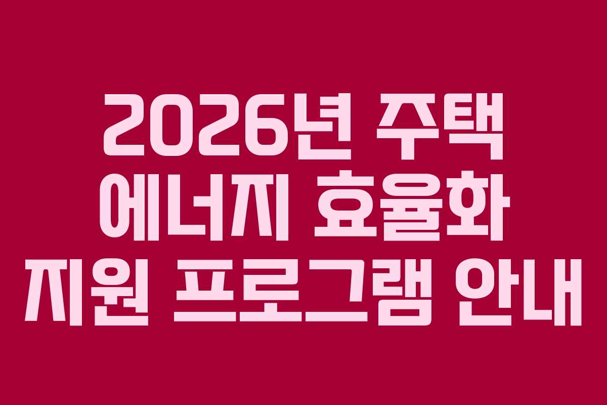 2026년에는 주택 에너지 효율화를 위한 다양한 지원 프로그램이 시행됩니다. 이 프로그램은 난방비와 전기료 절감을 위해 주택 개보수를 지원하며, 대상 가구와 관련된 세부사항을 안내합니다.