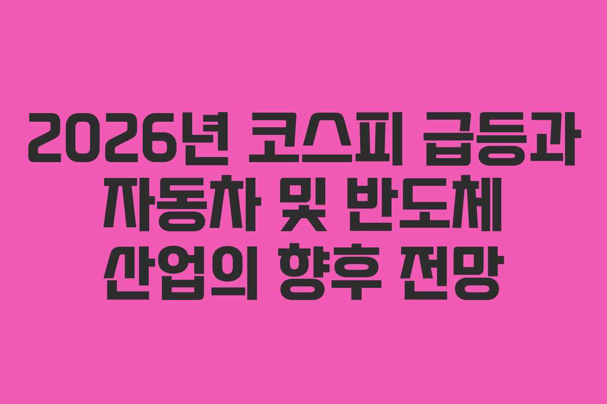 2026년, 코스피가 사상 최초로 6000선을 돌파한 가운데, 자동차 및 반도체 산업은 주식 시장에서 두각을 나타내고 있다. 특히 현대차그룹과 삼성전자의 주가는 강세를 보이며 시장의 흐름을 주도하고 있다. 이 글에서는 현재의 주가 상승 배경과 향후 전망, 그리고 투자자들이 주목해야 할 요소들을 다룰 것이다.