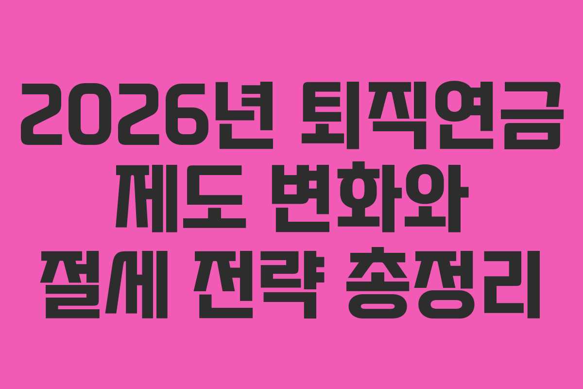 2026년 퇴직연금 제도 변화와 절세 전략 총정리