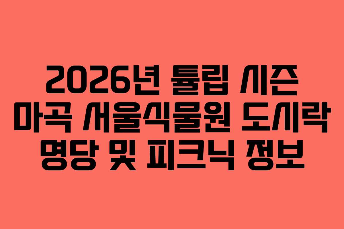 2026년 봄, 따뜻한 햇살과 함께 찾아온 튤립 시즌은 서울의 마곡 서울식물원에서 특별한 순간을 기대하게 만듭니다. 화사하게 피어나는 튤립들을 배경으로 도시락을 즐길 수 있는 명당과 피크닉 정보는 많은 이들에게 새로운 외출의 기회를 제공합니다. 저 역시 마곡 서울식물원에서 보낸 하루를 통해 이곳의 매력을 다시금 느낄 수 있었습니다. 이번 포스팅에서는 저의 경험을 바탕으로 2026년 튤립 시즌에 꼭 가봐야 할 도시락 명당과 피크닉 장소를 소개하겠습니다.