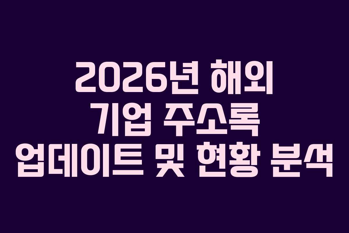 2026년을 맞아 해외 기업 주소록의 중요성이 더욱 부각되고 있으며, 기업들이 글로벌 시장에서 성공적으로 자리 잡기 위해서는 지속적인 정보 업데이트와 전략적 접근이 중요하다. 따라서, 독자들은 최신 정보를 참고하여 기업 운영에 도움이 되는 방향으로 활용하기를 바란다.
