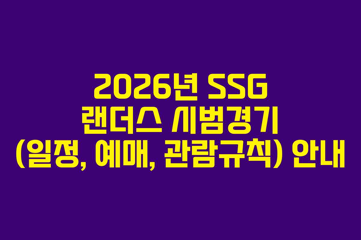 2026년 KBO 시범경기가 다가오고 있습니다. SSG 랜더스의 경기 일정과 관람 정보를 미리 확인하여 즐거운 관람 계획을 세워보세요. 아래에서 모든 정보를 자세히 살펴보세요.