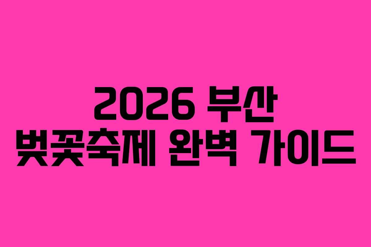 2026 부산 벚꽃축제 완벽 가이드