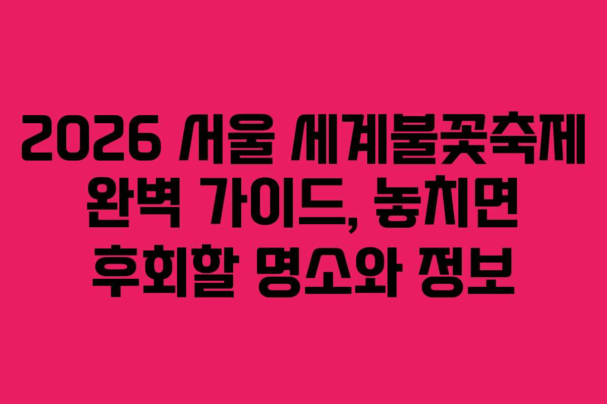 2026 서울 세계불꽃축제 완벽 가이드, 놓치면 후회할 명소와 정보
