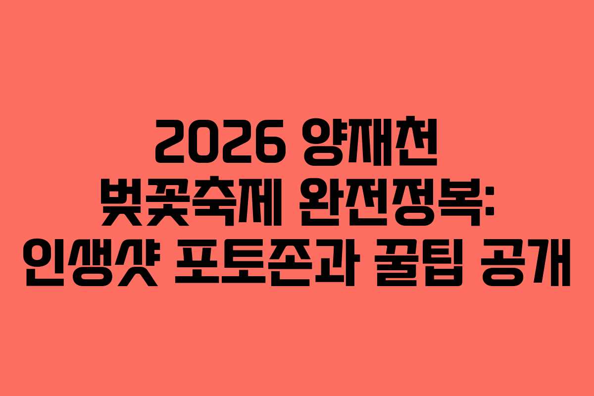 2026년 양재천 벚꽃축제가 다가오고 있습니다. 이번 축제는 아름다운 벚꽃을 만끽하며 즐길 수 있는 다양한 프로그램으로 가득 차 있습니다. 특히, 포토존과 꿀팁을 통해 인상적인 사진을 남길 수 있는 기회를 놓치지 마세요. 이 글에서는 축제의 전반적인 내용과 함께 유용한 정보들을 정리하여 여러분의 방문을 돕고자 합니다.