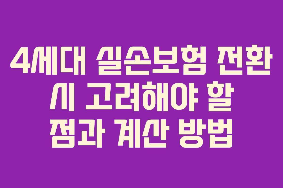 4세대 실손보험으로의 전환을 고민하는 이들이 늘어나고 있는 요즘, 보험 상품을 선택할 때 반드시 알아두어야 할 몇 가지 중요한 사항이 존재합니다. 실손보험에 대한 이해를 바탕으로, 전환 여부를 결정하는 데 도움이 될 정보들을 정리했습니다. 특히 자기부담금과 보장 한도에 대한 이해는 결정을 내리는 데 핵심이 됩니다. 이번 글에서는 4세대 실손보험의 계산 방식, 전환 시 유의할 점, 그리고 2세대와의 차이점에 대해 자세히 분석하겠습니다.