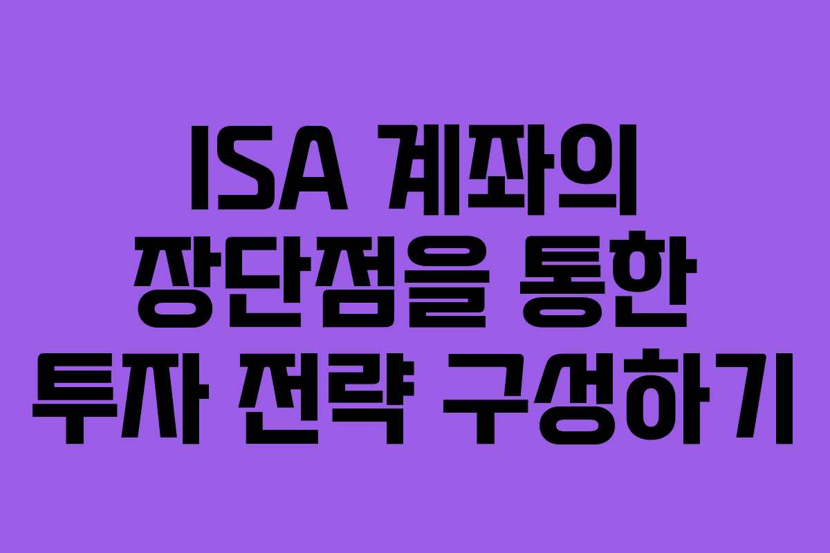 ISA 계좌의 장단점을 통한 투자 전략 구성하기