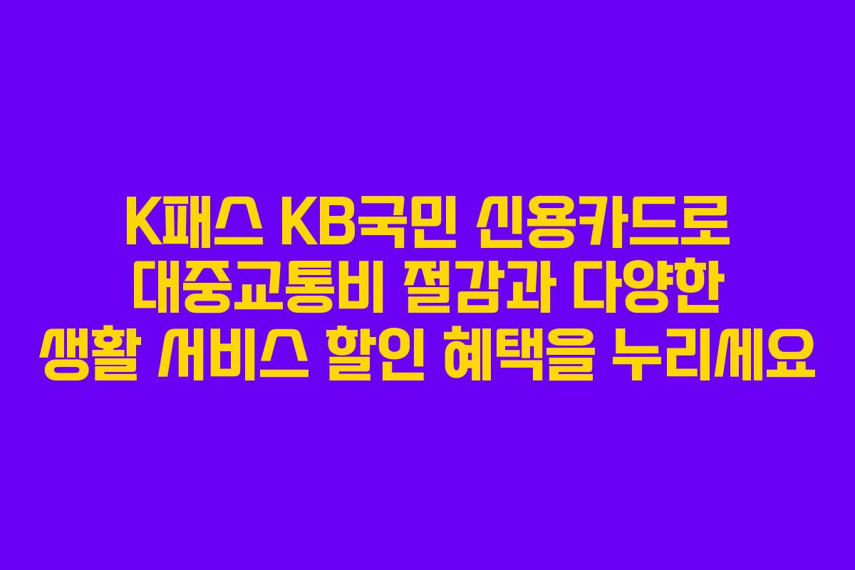 K패스 KB국민 신용카드는 대중교통비를 절약하면서 다양한 생활 서비스에서 할인 혜택을 누릴 수 있는 카드입니다. 이 카드는 발급 절차가 간편하고, 많은 이용자들에게 접근이 용이하여 실질적인 경제적 이익을 제공합니다. 본 글에서는 K패스 KB국민 신용카드의 주요 혜택과 신청 방법을 자세히 알아보겠습니다.