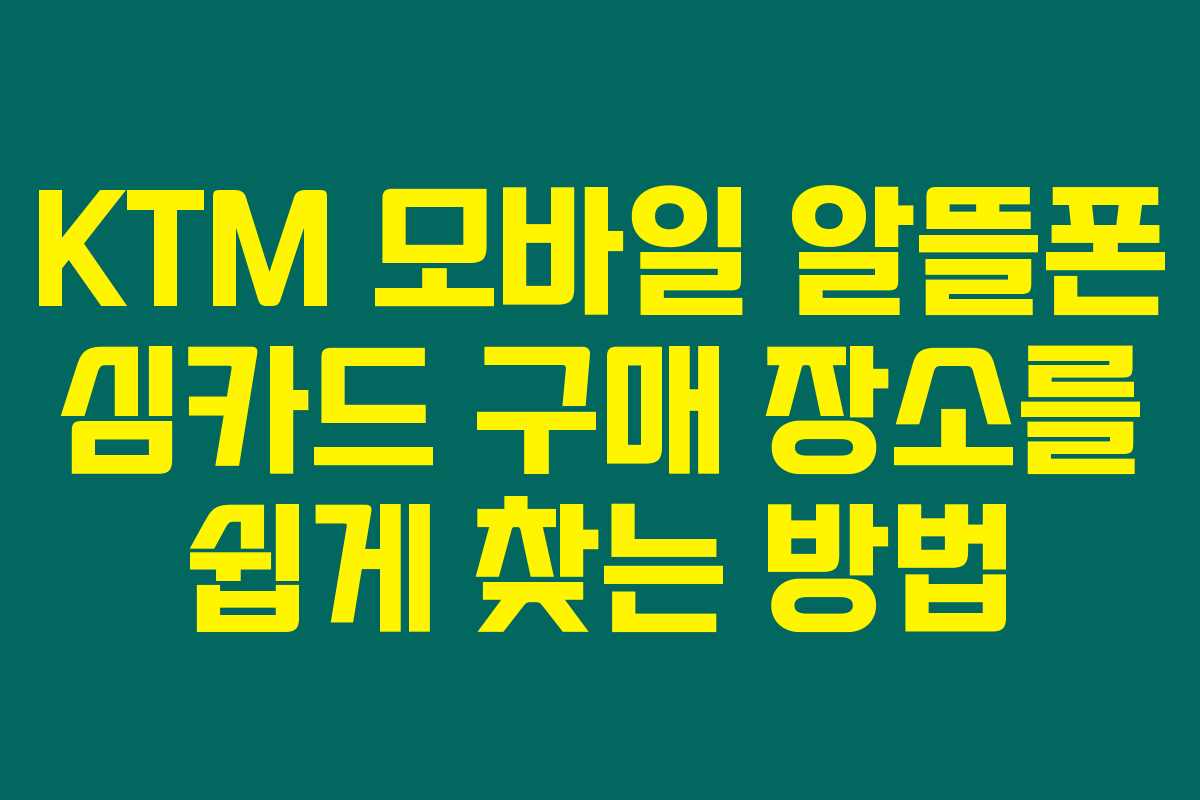 KTM 모바일 심카드는 전국의 주요 편의점과 온라인몰에서 구매할 수 있어서 매우 편리하답니다. 이 글에서는 그 장소와 주의사항, 개통 방법을 상세히 안내해 드릴게요.