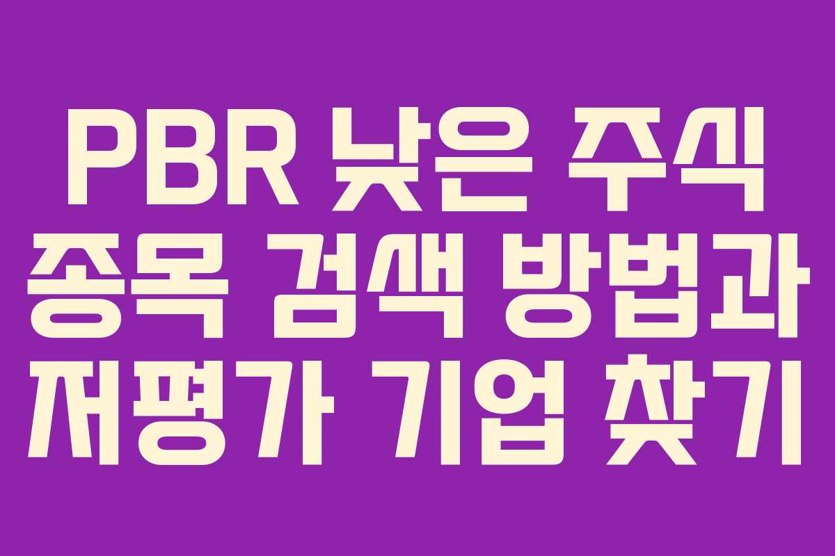 2026년 상반기에는 기업의 주식 평가에 대한 새로운 변화가 예상된다. 이러한 변화 속에서 PBR이 낮은 주식 종목에 대한 관심이 더욱 커지고 있다. 저평가 기업을 찾기 위해서는 PBR(Price Book Value Ratio, 주가순자산비율)의 개념과 검색 방법을 이해하는 것이 중요하다. 이번 포스팅에서는 PBR 1 미만의 주식 종목을 검색하는 방법을 구체적으로 안내할 예정이다.