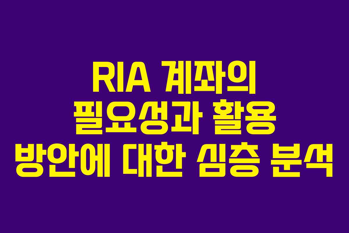 RIA 계좌의 필요성과 활용 방안에 대한 심층 분석